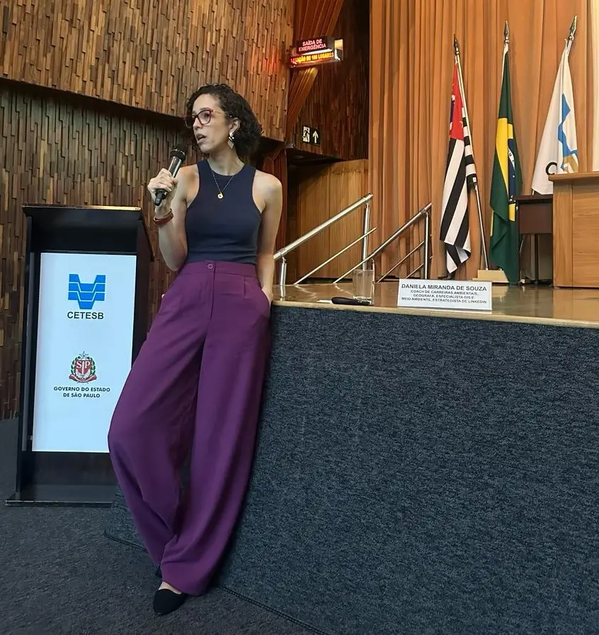 Sou Daniela Miranda de Souza, geógrafa, coach e mentora de carreiras para profissionais de meio ambiental e atuo no mercado ambiental há 15 anos.